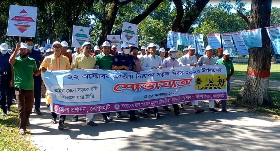 আইন মেনে সড়কে চলি, নিরাপদে ঘরে ফিরি’এই প্রতিপাদ্য নিয়ে সারাদেশের মতো জয়পুরহাটে নানা আয়োজনের মধ্যে দিয়ে পালিত হচ্ছে জাতীয় নিরাপদ সড়ক দিবস।শনিবার (২১ অক্টোবর) আজ সকাল দশটায় জেলা প্রশাসকের কার্যালয়ের সামনে থেকে বর্ণাঢ্য র্যালী বের করা হয়। র্যালিটি শহরের প্রধান সড়ক প্রদক্ষিণ করে। পরে জেলা প্রশাসকের সম্মেলন কক্ষে আলোচনা সভা অনুষ্ঠিত হয়।