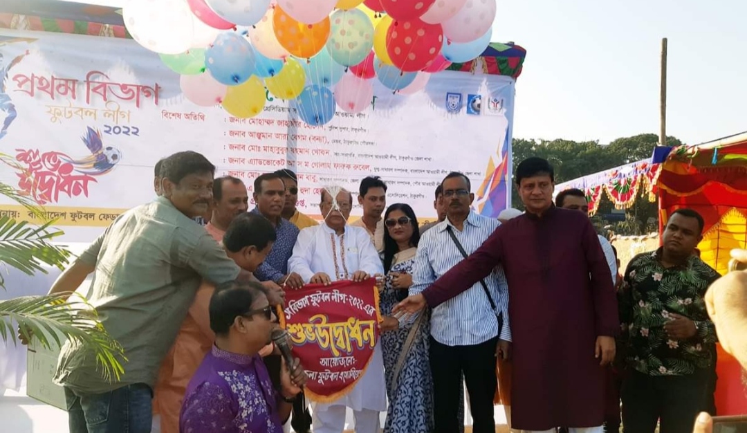 দীর্ঘ কল্পনার অবসান ঘটিয়ে ৪ বছর পর জমকালো আয়োজনের মধ্য দিয়ে উদ্বোধন হলো “প্রথম বিভাগ ফুটবল লীগ—২২”। শুক্রবার বিকালে সরকারি বালক উচ্চ বিদ্যালয় (বড় মাঠে) প্রধান অতিথি হিসেবে লীগের আনুষ্ঠানিক উদ্বোধন করেন আ’লীগের প্রেসিডিয়াম সদস্য ও ঠাকুরগাঁও—১ আসনের সংসদ সদস্য রমেশ চন্দ্র সেন। জেলা ফুটবল এসোসিয়েশনের আয়োজনে ও জেলা ক্রীড়া সংস্থার সহযোগিতায় ফুটবল লীগের উদ্বোধনী অনুষ্ঠানে বক্তব্য দেন প্রধান অতিথি আ’লীগের প্রেসিডিয়াম সদস্য ও ঠাকুরগাঁও—১ আসনের সংসদ সদস্য রমেশ চন্দ্র সেন, বিশেষ অতিথি জেলা ক্রীড়া সংস্থার সহ—সভাপতি ও পুলিশ সুপার মোহাম্মদ জাহাঙ্গীর হোসেন, পৌর মেয়র আঞ্জুমান আরা বেগম বন্যা, জেলা আ’লীগের সহ সভাপতি মাহাবুবুর রহমান খোকন, যুগ্ম সাধারণ সম্পাদক এ্যাড. আ.স.ম গোলাম ফারুক রুবেল, জেলা ক্রীড়া সংস্থার সাধারণ সম্পাদক মাসুদুর রহমান বাবু, জেলা ফুটবল এসোসিয়েশনের সভাপতি প্রবীর কুমার গুপ্ত বুয়া, সাধারণ সম্পাদক মনিরুল হুদা হেলাল প্রমুখ। এ সময় বিভিন্ন ক্রীড়া প্রতিষ্ঠানের কর্মকর্তা—কর্মচারী ও অংশগ্রহনকারী টিমের খেলোয়াড়, টিম ম্যানেজার ও খেলোয়াড়েরা উপস্থিত ছিলেন।