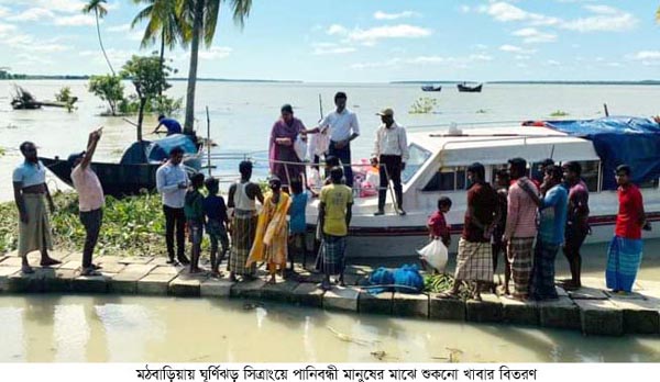 মঠবাড়িয়ায় ঘূর্ণিঝড় সিত্রাংয়ে পানিবন্ধী মানুষের মাঝে শুকনো খাবার বিতরণ