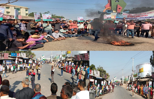দিনাজপুর-৫ (পার্বতীপুর-ফুলবাড়ী) আসনে বিএনপি’র দলীয় প্রার্থী হিসেবে ব্যারিস্টার কামরুজ্জামানের নাম ঘোষণার প্রতিবাদ এবং প্রার্থী পরিবর্তনের দাবিতে দিনাজপুরের পার্বতীপুরে বিক্ষোভ প্রতিবাদে ও সড়ক পথ অবরোধ ।বৃহস্পতিবার সকাল ১০টার দিকে কেন্দ্রীয় বাস টার্মিনালে চত্বরে বিক্ষোভ প্রতিবাদ ও সমাবেস অনুষ্ঠানের আয়োজন করা হয়। এতে সড়ক পথ অবরোধে পার্বতীপুর থেকে সৈয়দপুর, দিনাজপুর ফুলবাড়ী ও রংপুরগামী পরিবহন যোগাযোগ বন্ধ হয়ে যায়, এ সময় বাংলাদেশ পেট্রোলিয়াম কর্পোরেশন,পার্বতীপুর থেকে তেল সরবরাহ বন্ধ থাকে জানা গেছে, প্রথম ধাপে বিএনপি ২৩৭টি আসনে দলীয় প্রার্থী ঘোষণা দিলেও স্থগিত রাখা হয় দিনাজপুর- ৫ আসনটি। গত ০৪ ডিসেম্বর এ আসনে দলীয় প্রার্থী হিসেবে ব্যারিস্টার এ কে এম কামরুজ্জামানের নাম ঘোষণার পরেই অস্থিতিশীল হয়ে এ আসন। আন্দোলন, বিক্ষোভ, সমাবেশ, মানববন্ধন, প্রতিবাদ সভা, সংবাদ সম্মেলনের মাধ্যমে মনোনীত প্রার্থীর মনোনয়ন বাতিলের দাবি জানান কেন্দ্রীয় কমিটির সদস্য দিনাজপুর জেলা কমিটির সাবেক আহ্বায়ক ও উপজেলা বিএনপির সভাপতি এ জেড এম রেজওয়ানুল হকের কর্মী, সমর্থক ও ভোটার ছাড়াও শুভাকাঙ্ক্ষীরা। বুধবার রাতে পুরো উপজেলায় মাইকিং এর মাধ্যমে বিএনপি’র পক্ষ থেকে সকাল-সন্ধ্যা অবরোধের ঘোষণা দেয়া হয়। এরই অংশ হিসেবে বৃহস্পতিবার সকাল থেকে শহরের নতুন বাজারের কাপড় মার্কেট, স্বর্ণপট্টী, মনিহারিপট্টিসহ সকাল দোকান পাট বন্ধ রেখে সমর্থন প্রকাশ করেন ব্যবসায়ীরা। সেই সাথে পাবতীপুরে অবস্থিত জ্বালানী তেল সরবরাহের রেল হোড অয়েল ডিপো থেকে উত্তরের আট জেলায় তেল সরবরাহ সকাল ৯টা থেকে বন্ধ করে দেয়া হয়। সেই সাথে কেন্দ্রীয় বাস টার্মিনাল গোল চত্বরে টায়ারে আগুন দিয়ে বিক্ষোভ করলে পার্বতীপুরের সাথে সড়ক পথে সকল যোগাযোগ বন্ধ হয়ে যায়। সংবাদ পেয়ে পার্বতীপুর উপজেলা নির্বাহী কর্মকর্তা মোঃ সাদ্দাম হোসেন ঘটনাস্থলে পৌঁছিলে পরিস্থিতি নিয়ন্ত্রণে আনলে বেলা ১২টার দিকে যান চলাচল স্বাভাবিক হয়। দাবি আদায় না হলে কঠোর আন্দোলনের হুশিয়ারী দিয়ে বক্তব্য রাখেন উপজেলা বিএনপির যুগ্ম সম্পাদক আকরাম হোসেন মাস্টার, সাংগঠনিক সম্পাদক অধ্যক্ষ মোখলেছুর রহমান, দপ্তর সম্পাদক ও সাবেক প্যানেল মেয়র জাহাঙ্গীর আলম, পৌর বিএনপির সভাপতি আতিয়ার রহমান, পৌর স্বেচ্ছাসেবক দলের আহ্বায়ক ও সাবেক প্যানেল মেয়র মন্জুরুল আজিজ পলাশ, পৌর যুবদলের আহ্বায়ক রবিউল ইসলাম বাবু, উপজেলা স্বেচ্ছাসেবক দলের সাবেক সদস্য সচিব শরিফুল ইসলাম বাবু সহ সকল অঙ্গ ও সহযোগী সংগঠনের নেতাকর্মীরা উপস্থিত ছিলেন।