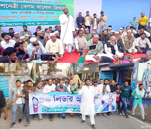সাবেক প্রধানমন্ত্রী ও বিএনপির চেয়ারপারসন বেগম খালেদা জিয়ার আশু রোগমুক্তি ও দীর্ঘায়ু কামনায় পিরোজপুরে কুরআন খতম ও দোয়া মাহফিল অনুষ্ঠিত হয়েছে। রোববার (১৪ ডিসেম্বর) বিকেলে শহরের গোপাল কৃষ্ণ টাউন ক্লাব টেনিস গ্রাউন্ডে এ দোয়া মাহফিলের আয়োজন করা হয়। পিরোজপুর জেলা ছাত্রদলের সাবেক সাধারণ সম্পাদক ও সাবেক জেলা যুবদলের যুগ্ম আহ্বায়ক এমডি বদিউজ্জামান শেখ রুবেলের উদ্যোগে এই অনুষ্ঠানের আয়োজন করা হয়। এর আগে পিরোজপুর পৌরসভা চত্বর থেকে শেখ রুবেলের নেতৃত্বে ‘তারেক জিয়া, লিডার আসবে’ স্লোগান সংবলিত ব্যানারসহ দেড় হাজারের বেশি নেতাকর্মী একটি মিছিল নিয়ে শহরের বিভিন্ন সড়ক প্রদক্ষিণ করে টাউন ক্লাব মাঠে এসে সমবেত হন। দোয়া মাহফিলে বক্তব্য রাখেন কেন্দ্রীয় শহীদ জিয়া পরিষদের সভাপতি শহিদুল ইসলাম রানা, জেলা বিএনপির সাবেক সদস্য এম এ জলিল, আসলাম শেখ, পৌর বিএনপির সাংগঠনিক সম্পাদক মো. তৌহিদুল ইসলাম, আলাউদ্দিন খান, জেলা ছাত্রদলের সাবেক সহ-সভাপতি মশিউর মোল্লা, জেলা ছাত্রদলের সাবেক দপ্তর সম্পাদক মো. মশিউর, পৌর শ্রমিক দলের সাংগঠনিক সম্পাদক সোহেল শেখসহ বিএনপির বিভিন্ন অঙ্গ ও সহযোগী সংগঠনের নেতৃবৃন্দ। অনুষ্ঠানে বিএনপি ও এর অঙ্গ-সহযোগী সংগঠনের বিপুলসংখ্যক নেতাকর্মী উপস্থিত ছিলেন। দোয়া মাহফিলে বক্তারা বলেন, দেশনেত্রী বেগম খালেদা জিয়া বর্তমানে গুরুতর অসুস্থ। তার সুস্থতার জন্য দেশবাসী আন্তরিকভাবে দোয়া করছে। তারা আরও বলেন, বেগম খালেদা জিয়া গণতন্ত্রের প্রতীক। আল্লাহর অশেষ রহমতে তিনি দ্রুত সুস্থ হয়ে আবারও জাতির মাঝে ফিরে আসবেন, এটাই সকলের প্রত্যাশা।