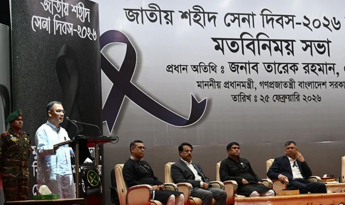 দীর্ঘ সংগ্রামের পর আজ জনগণের রায়ে নির্বাচিত সরকার দেশ পরিচালনা করছে। দেশের প্রশ্নে আমরা সীমান্ত বাহিনীকে আরো আধুনিক ও সুসংহত করব। আমাদের সদস্যরা দেশপ্রেম ও পেশাগত উৎকর্ষতায় সীমান্তে দায়িত্ব পালন করবে বলেছেন,প্রধানমন্ত্রী তারেক রহমান । তিনি বলেন, ২০০৯ সালে পিলখানায় শাহাদাত বরণকারী সদস্যদের পরিবার ও নিকটাত্মীয়, পিলখানায় চাকরিরত সেইসব সেনা অফিসাররা দুঃসহ স্মৃতি আজও বয়ে বেড়াচ্ছেন।বুধবার বিকেলে জাতীয় শহীদ সেনা দিবস উপলক্ষে এক মতবিনিময় সভায় অংশ নিয়ে এসব কথা বলেন প্রধানমন্ত্রী। স্বরাষ্ট্রমন্ত্রী, প্রতিরক্ষা উপদেষ্টা, সেনাবাহিনী, নৌবাহিনী ও বিমান বাহিনী প্রধানরা, সেনাবাহিনীর ঊর্ধ্বতন কর্মকর্তা, বর্ডার গার্ড বাংলাদেশের (বিজিবি) মহাপরিচালক এ মতবিনিময় সভায় অংশ নেন।তারেক রহমান বলেন, মাহে রমজানের এই পড়ন্ত বিকেলে শ্রদ্ধার সঙ্গে স্মরণ করছি মহান মুক্তিযুদ্ধের বীর শহীদদের, ৯০ এর গণ-আন্দোলন এবং ২৪ এর গণঅভ্যুত্থানে শাহাদাত বরণকারী সব ছাত্র-জনতাকে। গভীর শ্রদ্ধার সঙ্গে স্মরণ করছি ২০০৯ সালের ২৫ ও ২৬ ফেব্রুয়ারি পিলখানায় সংঘটিত বর্বরোচিত হত্যাকাণ্ডে শাহাদাত বরণকারী ৫৭ জন দেশপ্রেমিক সেনা কর্মকর্তাসহ ৭৪ জন বীর শহীদকে। আমি তাঁদের আত্মার মাগফিরাত কামনা করছি এবং শোকসন্তপ্ত শহীদ পরিবারগুলোর সদস্যদের প্রতি গভীর সমবেদনা জ্ঞাপন করছি।আজ ২৫ ফেব্রুয়ারি; জাতির ইতিহাসে এক রক্তাক্ত ও বেদনাবিধুর দিন উল্লেখ করে প্রধানমন্ত্রী বলেন, এই দিনটি এলে প্রকৃতি যেন আবার স্মৃতি ও শোকের ভারে নীরব হয়ে যায়, বাতাসে ভেসে আসে সেই বিভীষিকাময় মুহূর্তের আর্তনাদ। আমাদের হৃদয় গভীর বেদনায় ভারাক্রান্ত হয়ে ওঠে। ২০০৯ সালের ২৫ ও ২৬ ফেব্রুয়ারির এই নির্মম ঘটনা আমাদের জাতীয় জীবনে এক গভীর ক্ষত সৃষ্টি করেছে, যার বেদনা সময় পেরিয়ে আজও বহমান। ঘটনার দীর্ঘ ১৭ বছর পরে শহীদদের স্মৃতি বিজড়িত এই প্রাঙ্গণে আজ আমার কণ্ঠ ভারী হয়ে আসছে।তারেক রহমান বলেন, আমি কেবল একজন জনপ্রতিনিধি হিসেবে নয়, একজন সেনা পরিবারের সদস্য হিসেবে, একজন সহযোদ্ধার সন্তানের মতো আপনাদের সামনে উপস্থিত হয়েছি। ২০০৯ সালের সেই বিভীষিকাময় ঘটনায় ৫৭ জন মেধাবী ও দেশপ্রেমিক সেনা কর্মকর্তাসহ সর্বমোট ৭৪টি প্রাণ ঝরে গিয়েছিল। প্রতিটি নাম একটি পরিবারের আলো নিভে যাওয়ার গল্প, প্রিয়জন হারানোর বেদনাবিধুর অধ্যায়, একটি সন্তানের পিতৃহীন হওয়ার ইতিহাস, একটি স্বপ্নের অসমাপ্ত মহাকাব্য।সরকারপ্রধান বলেন, আমি দেশে প্রত্যাবর্তনের পরপরই বনানী সামরিক কবরস্থানে গিয়ে শহীদ সেনা কর্মকর্তাদের কবরের পাশে দাঁড়িয়ে উপলব্ধি করেছি— গত ১৭ বছরে আপনাদের দুর্বিষহ সংগ্রাম, অপরিসীম ত্যাগ আর দ্বারে দ্বারে ঘুরে বিচার না 